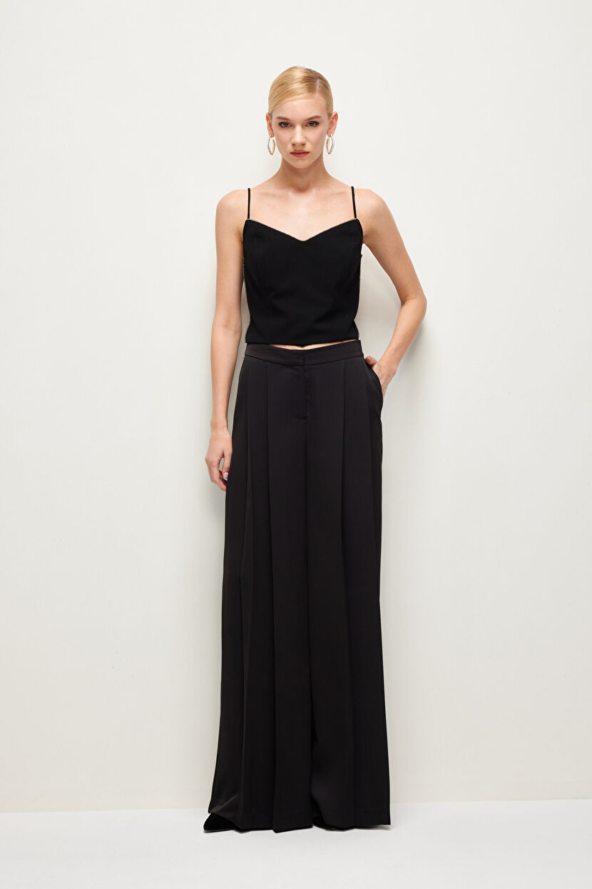 Siyah Night Zoom Asimetrik Pileli Bol Pantolon