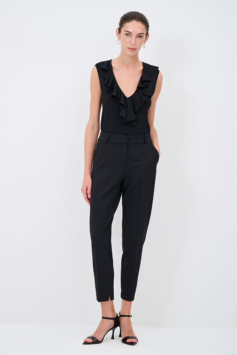 Siyah Paçası Yırtmaçlı Cepli Pantolon