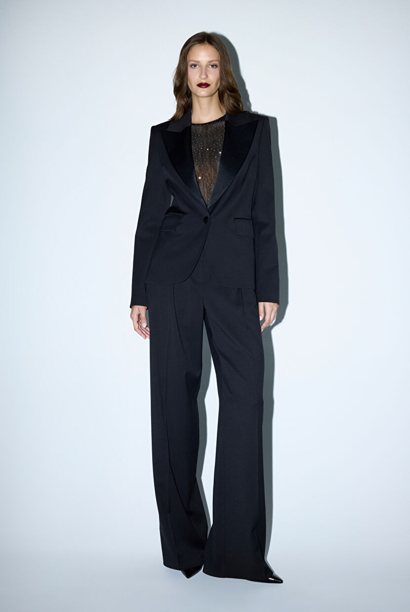 Siyah Pileli Bol Pantolon