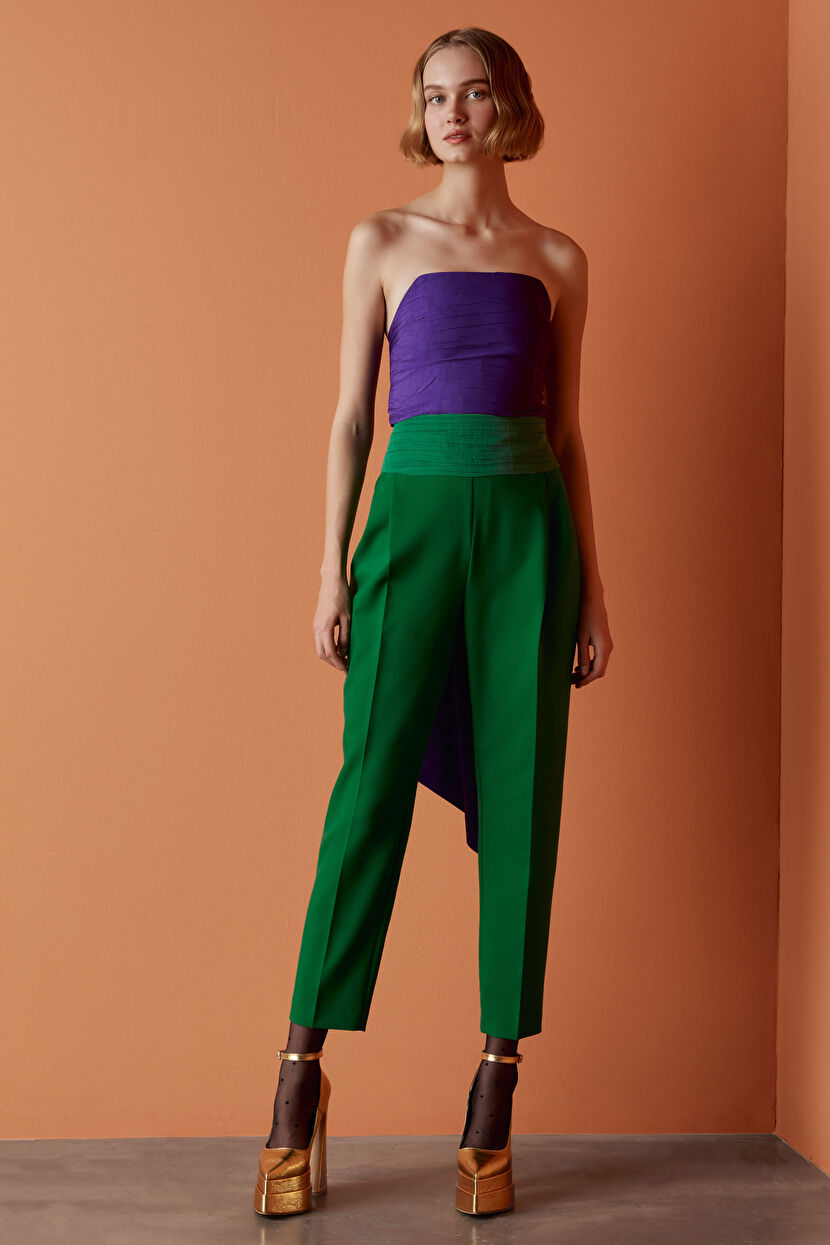 Yeşil Mert Aslan Beli Piliseli Havuç Paça Pantolon