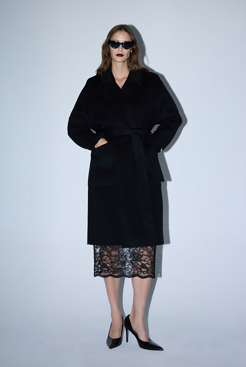 Siyah Mert Aslan Mert Aslan Cepli Yün Karışımlı Kaban