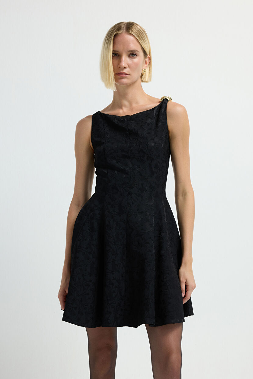 Siyah Kup Detaylı Mini Elbise