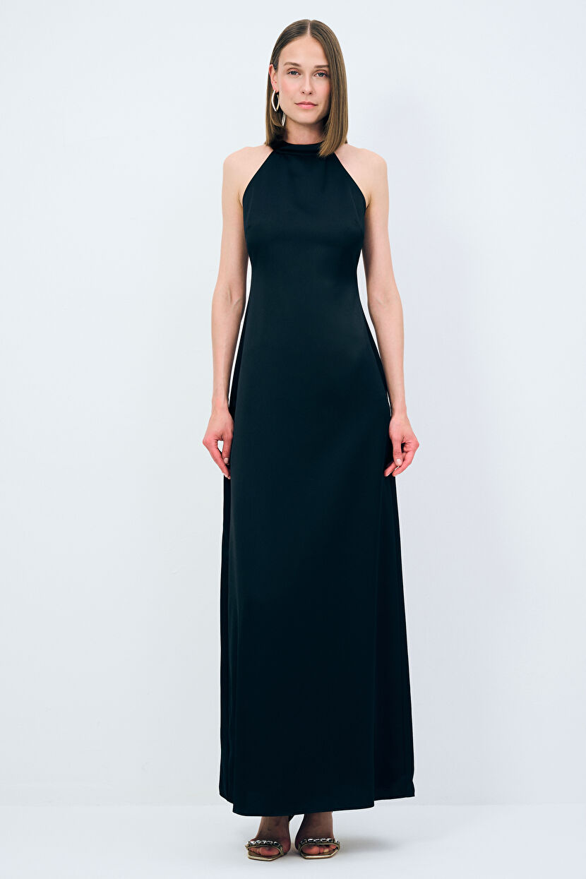 Siyah Night Zoom Halter Yaka Uzun Elbise