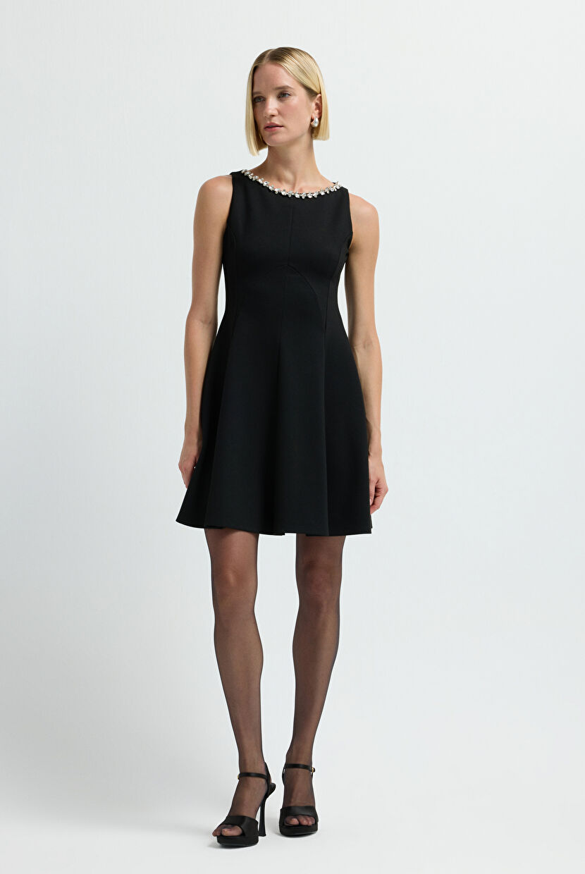 Siyah Yakası Taşlı Elbise