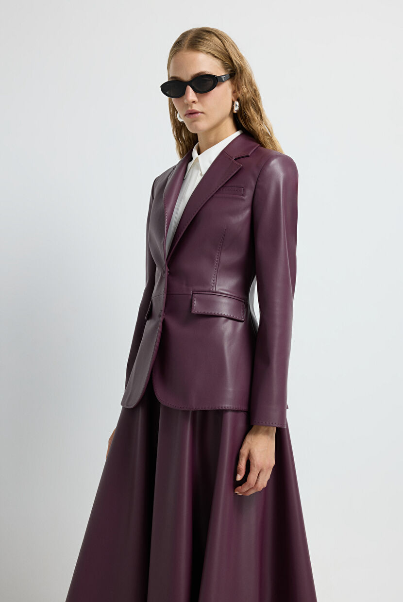 Mürdüm Mono Kapama Kazayağı Desenli Ceket