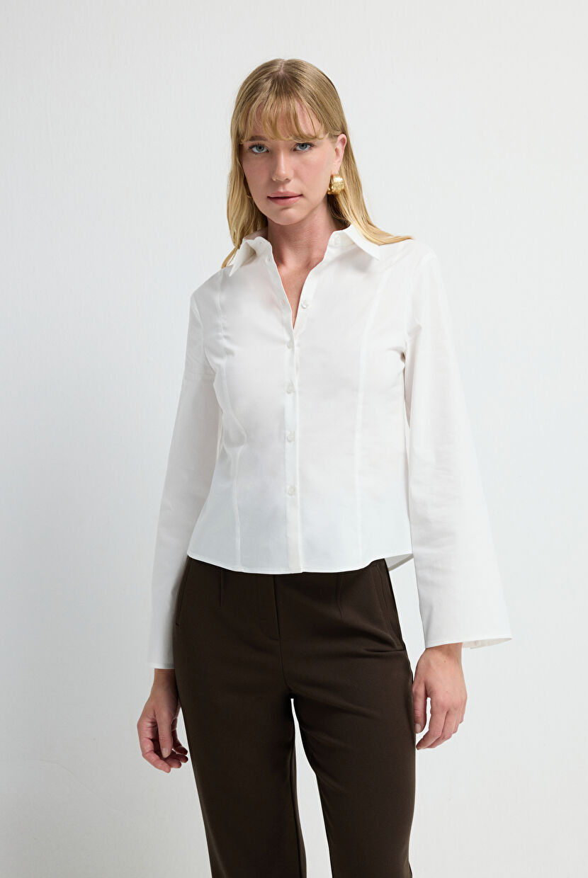 Beyaz Pile Detaylı Kolsuz Gömlek