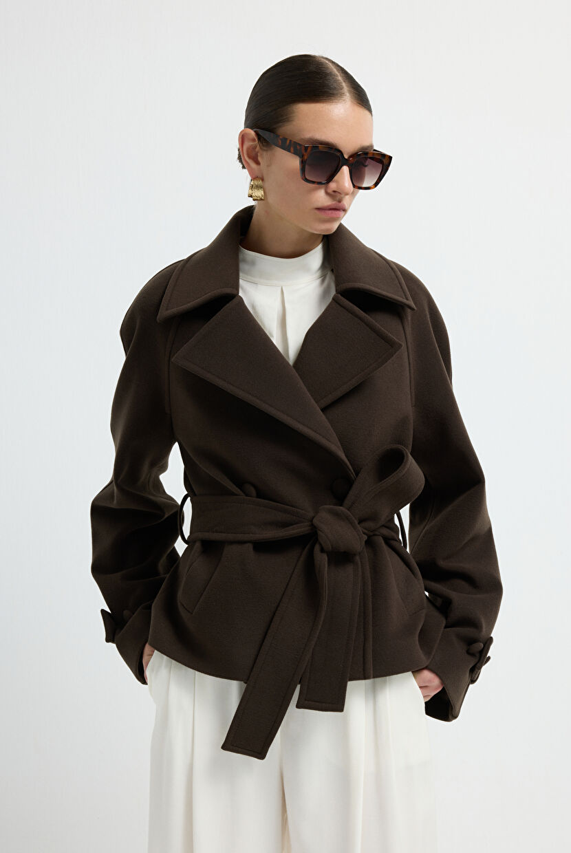 Kahverengi Bebe Yaka Yün Karışımlı Kaban