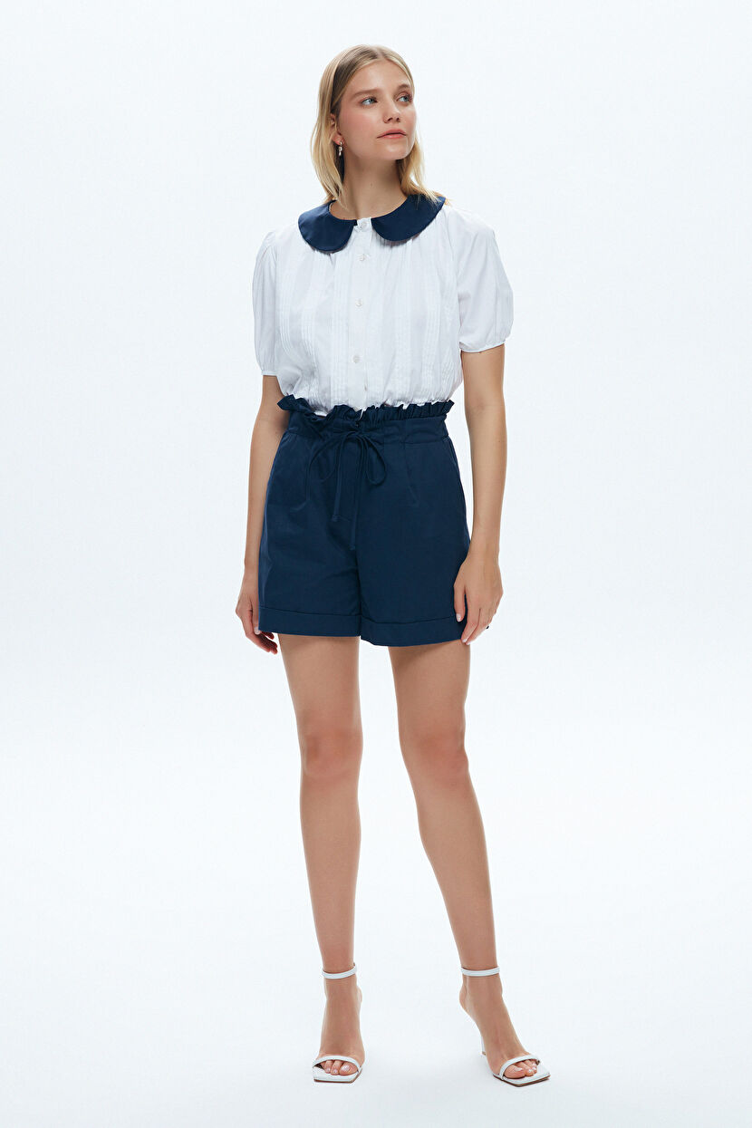 Lacivert Beli Fırfırlı Önden Bağcıklı Şort