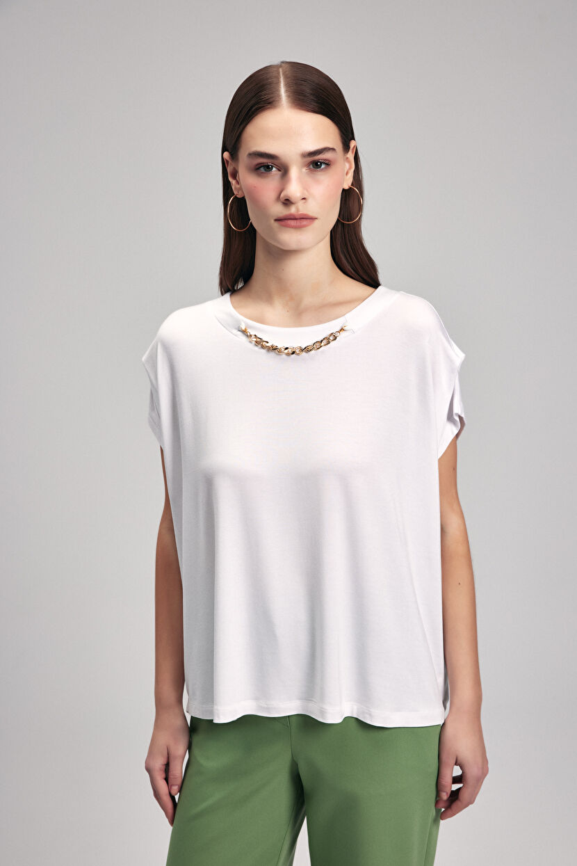 Kemik Yakası Zincirli Kısa Kollu Tişört