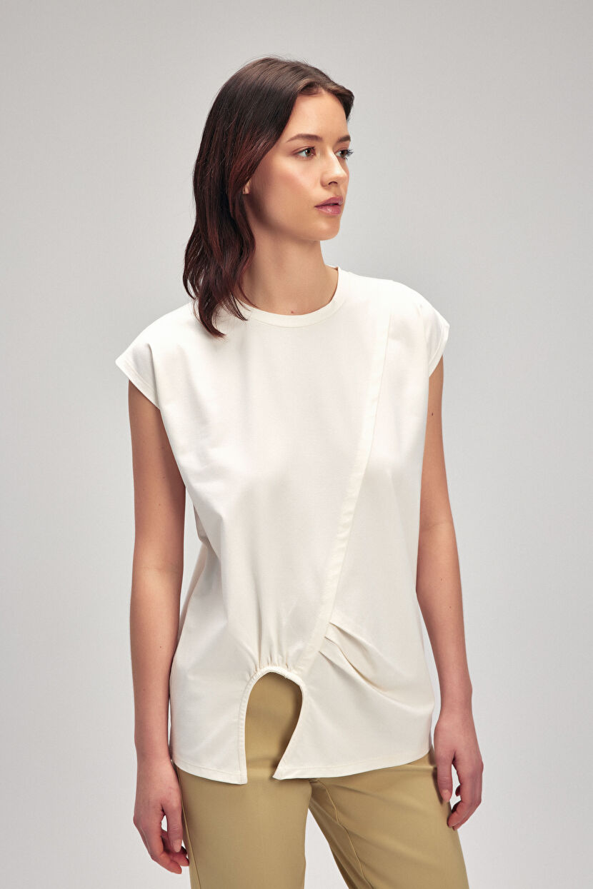Vanilya Büzgülü Asimetrik Tişört