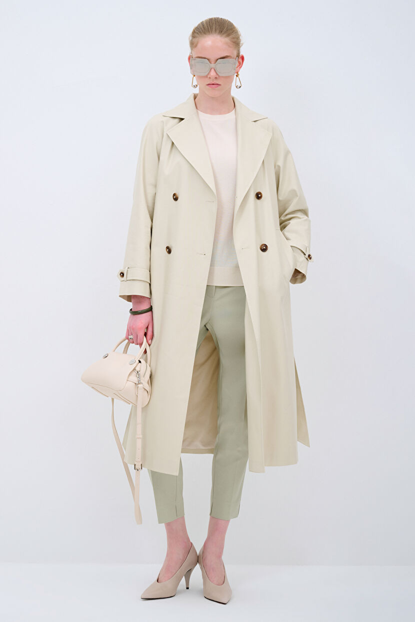 Gri Kemer Detaylı Uzun Trençkot
