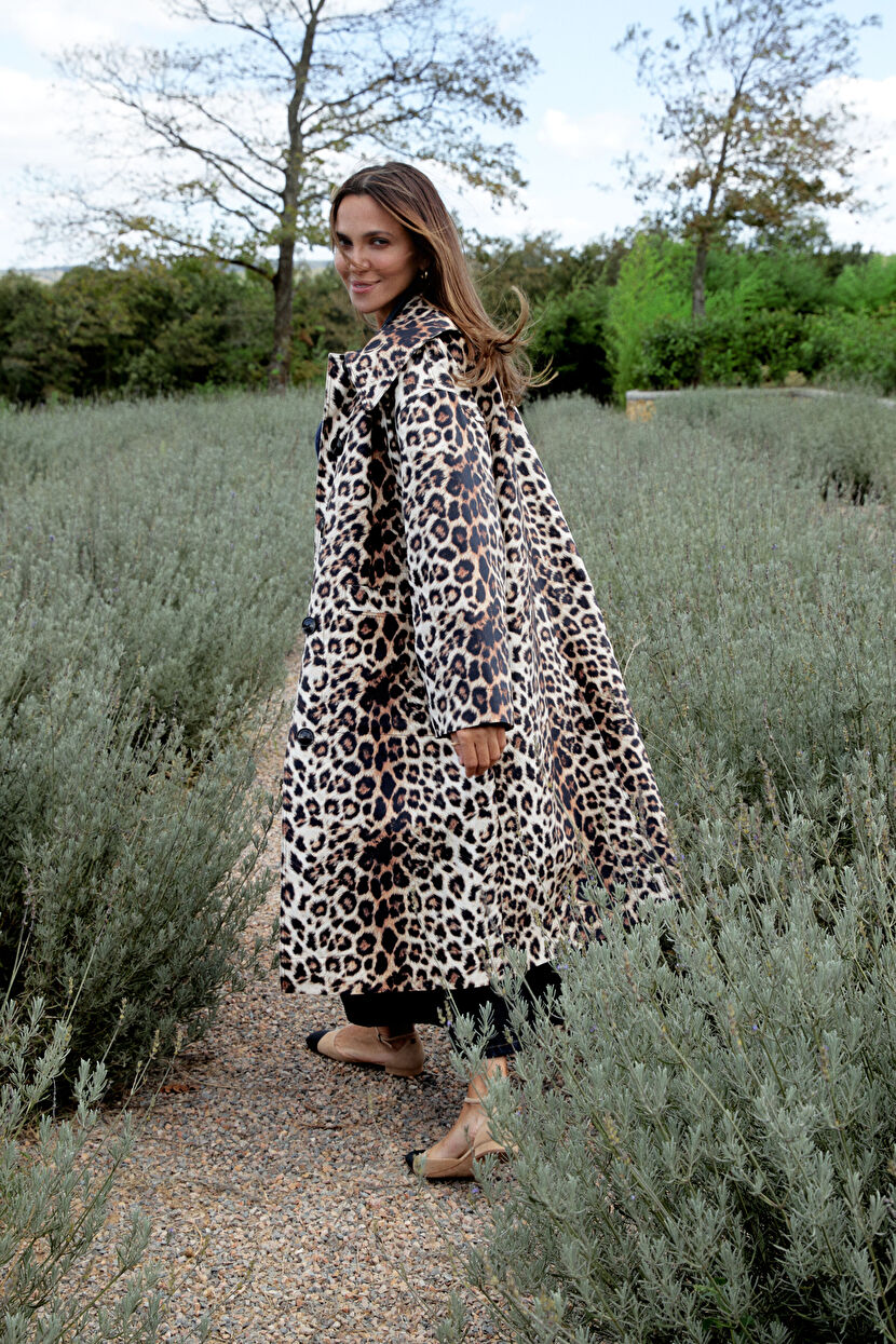 Kahverengi Moda Tutkusu Leopar Desenli Trençkot