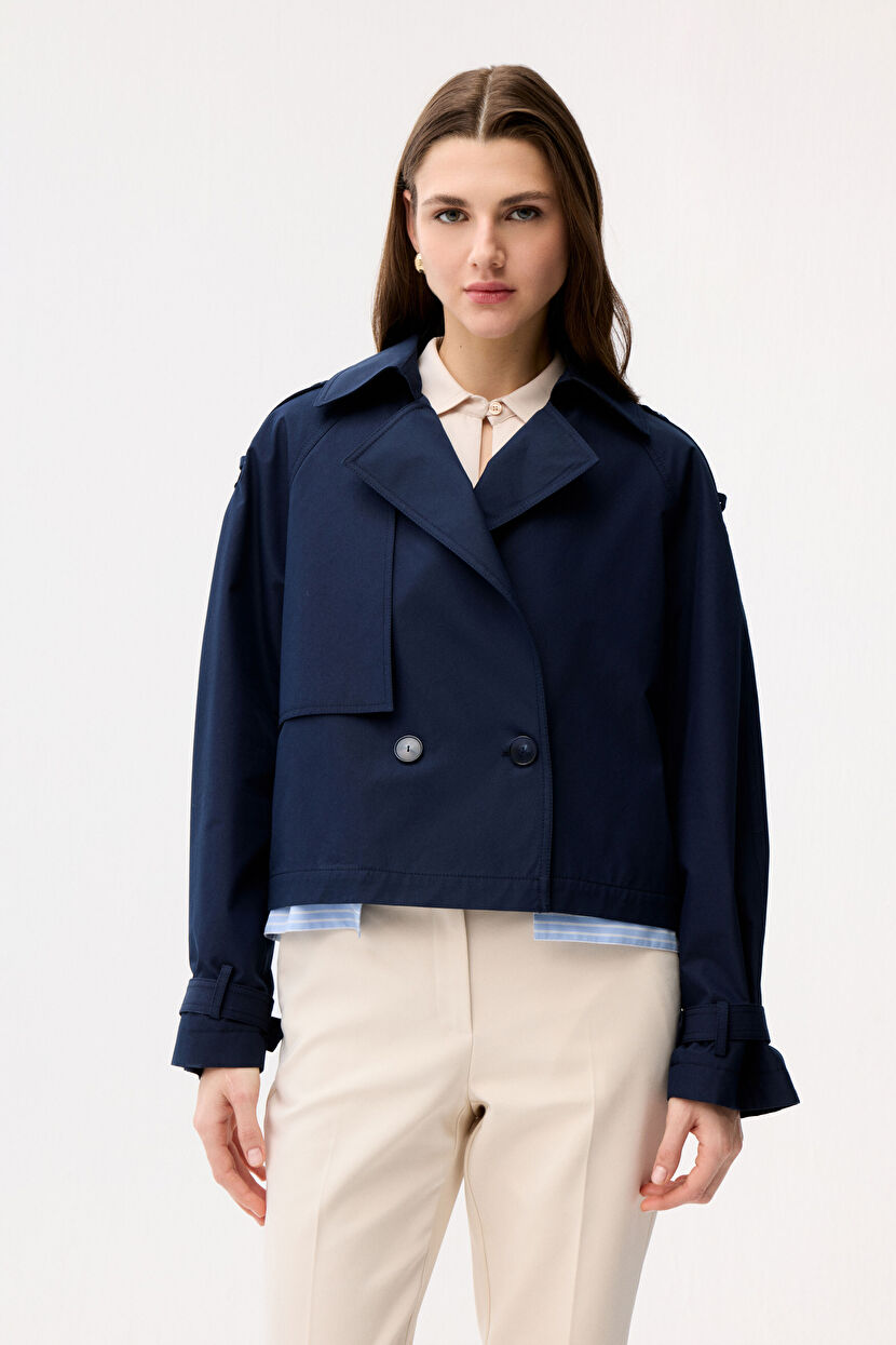 Lacivert Kısa Trençkot