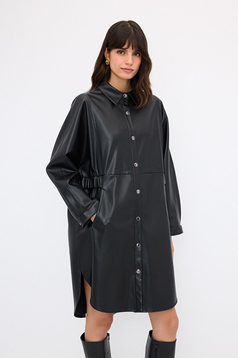 Siyah Beli Lastikli Trençkot