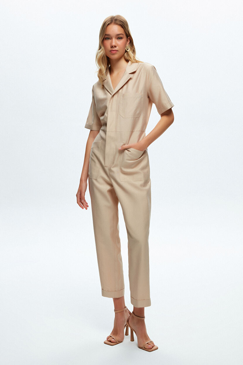 Bej Cep Detaylı Uzun Tulum