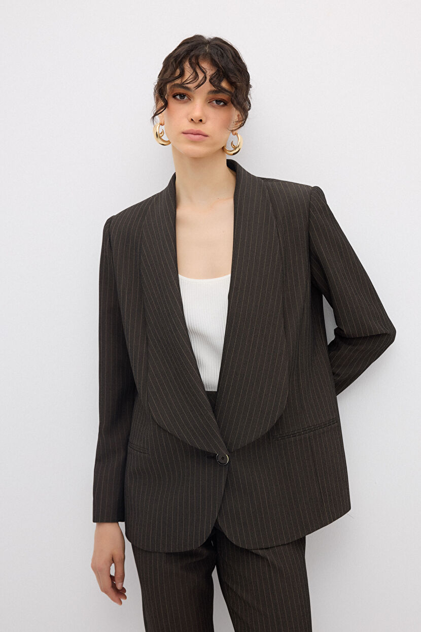 C.Kahve Çizgili Mono Kapama Ceket