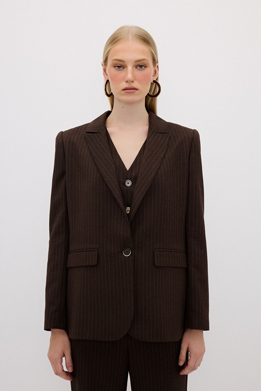 C.Kahve Çizgili Mono Kapama Ceket