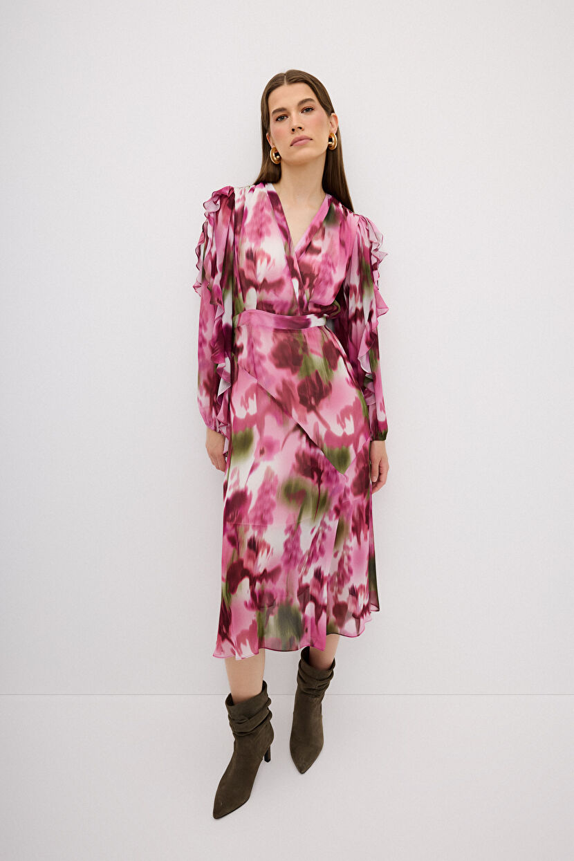 Fuşya Desenli Uzun Elbise