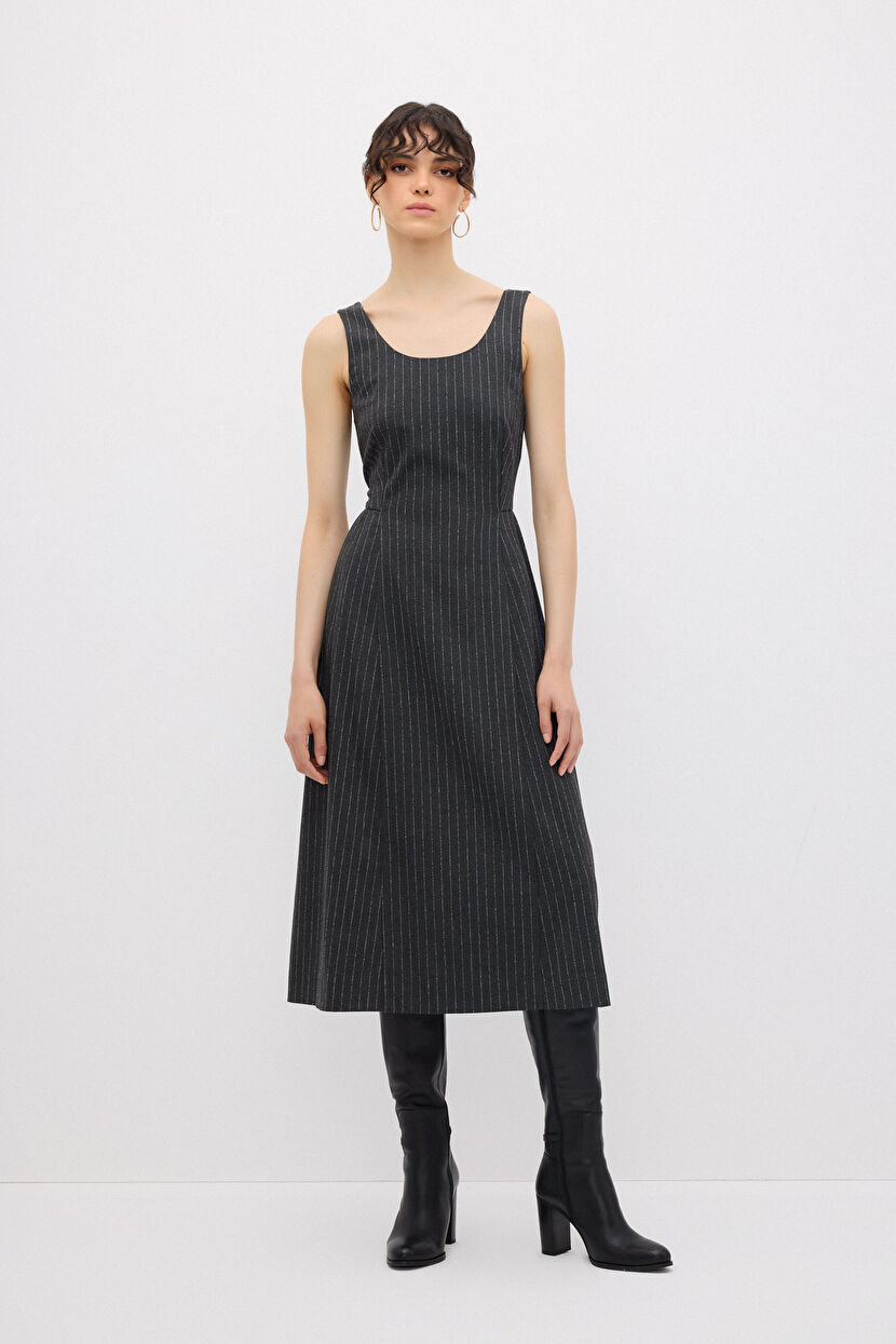 Gri Askılı Midi Elbise