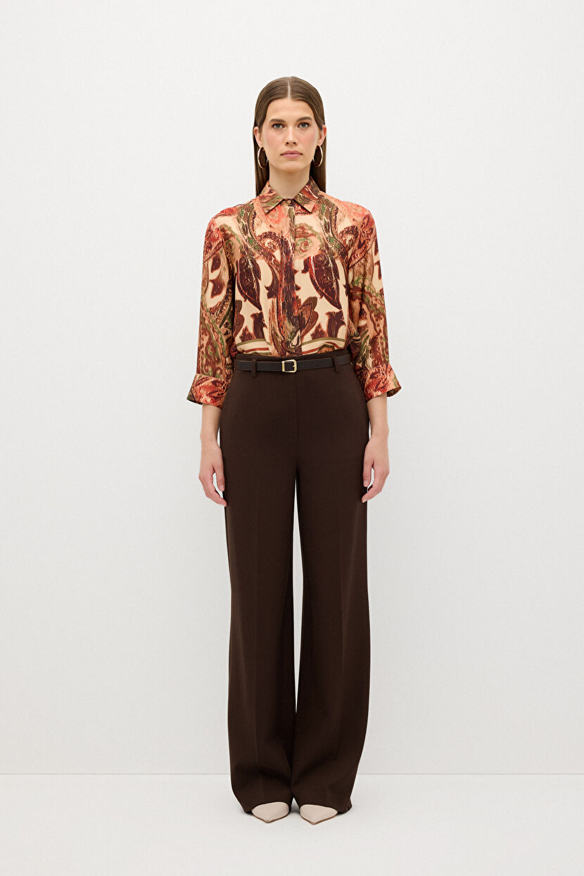 Kahverengi Geniş Paça Kemerli Pantolon