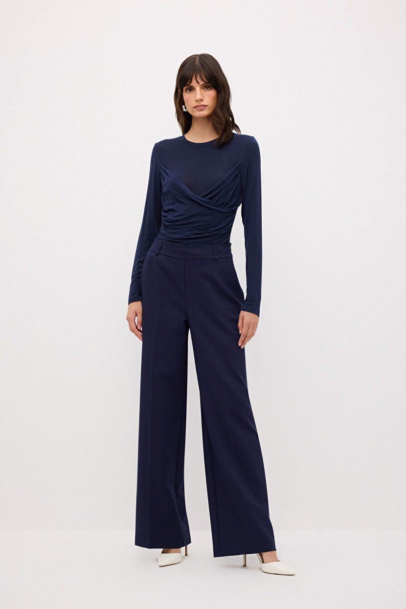 Lacivert Carie Paça Pantolon