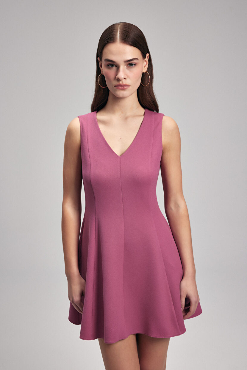 Pembe V Yaka Mini Elbise