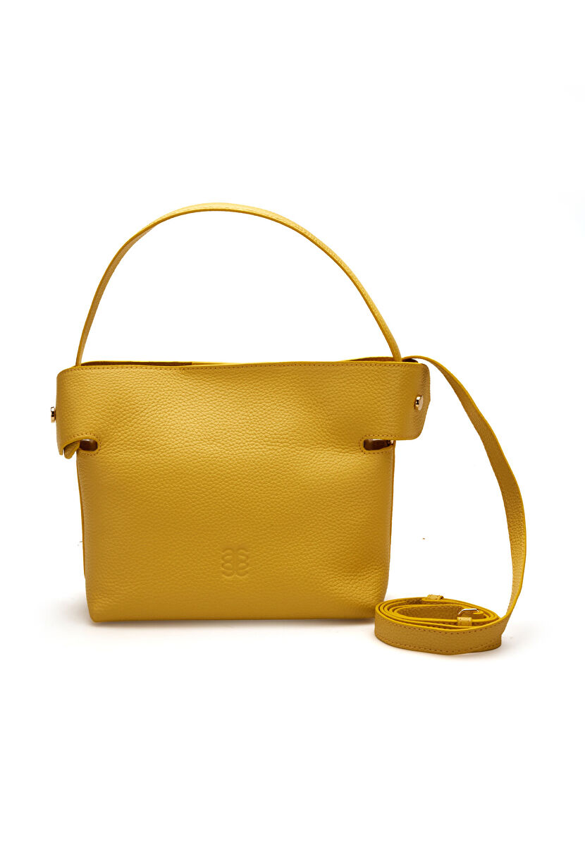 Sarı Deri Çıtçıt Detaylı Çanta