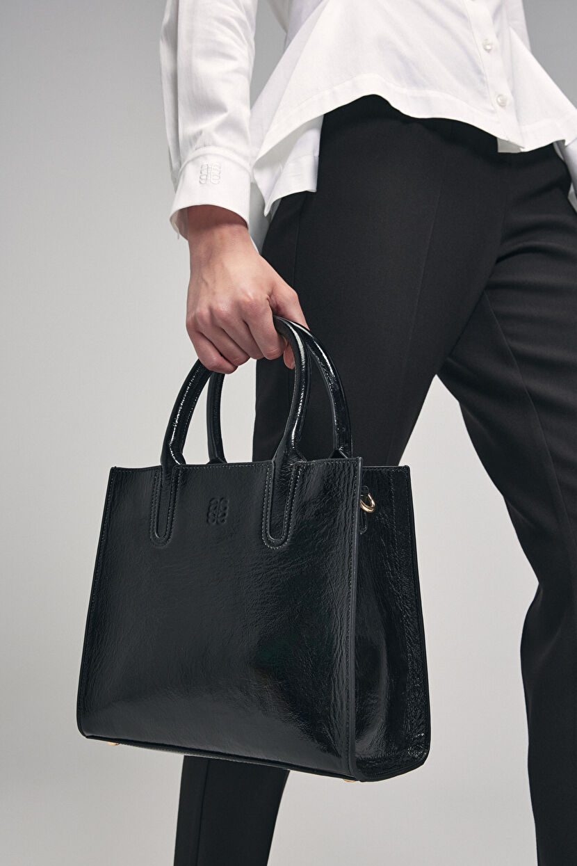 Siyah Deri Rugan Çanta