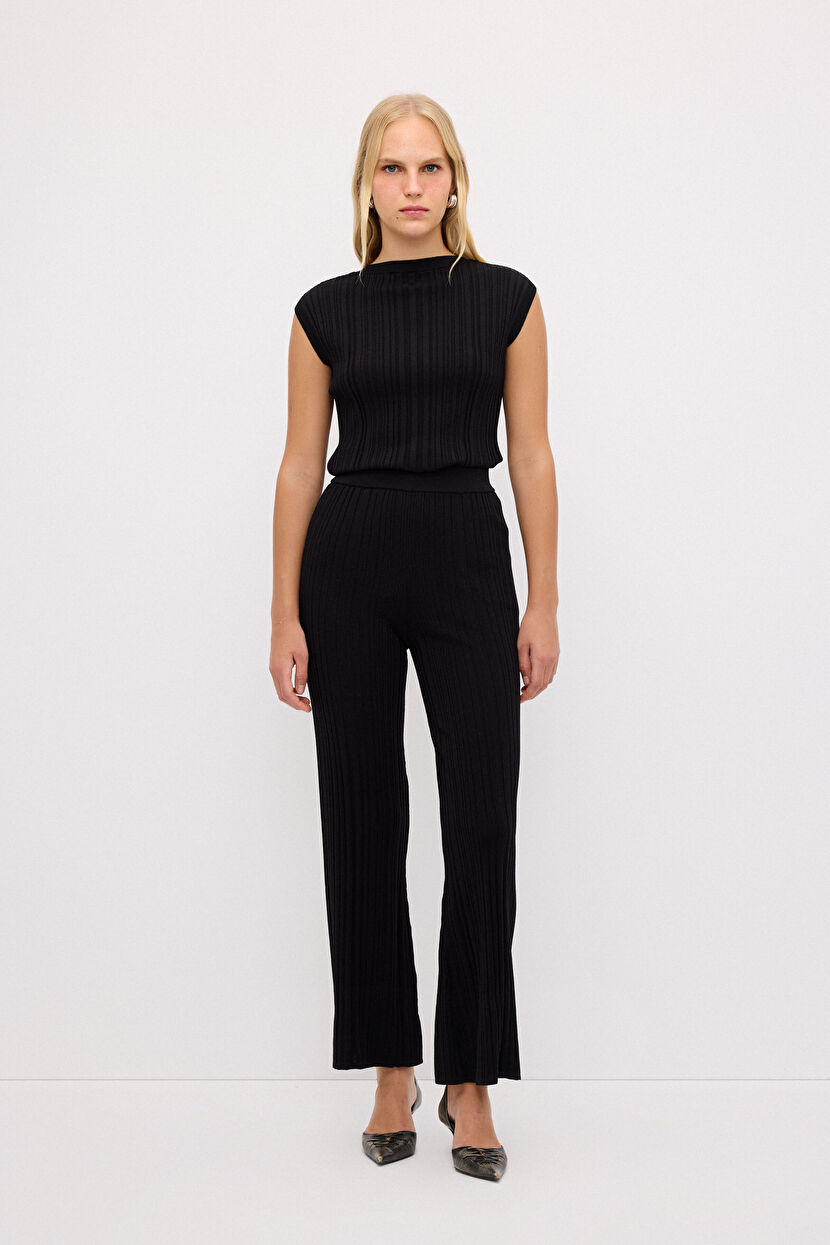 Siyah Fitilli Triko Pantolon