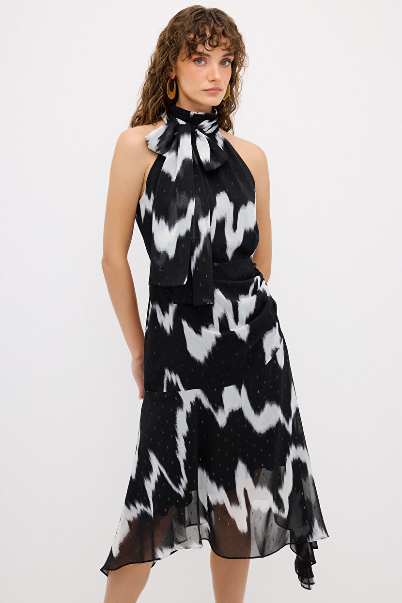 Siyah Halter Yaka Şifon Elbise