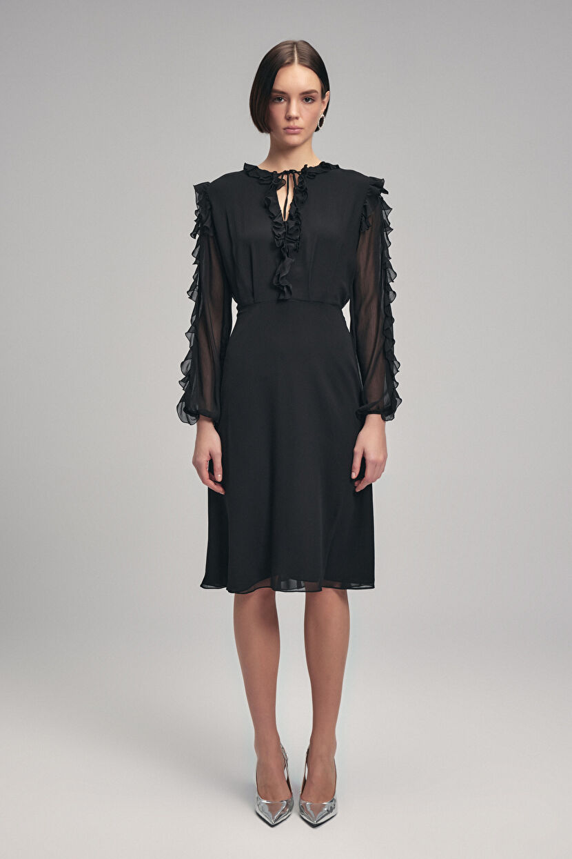 Siyah Önden Bağlamalı Elbise