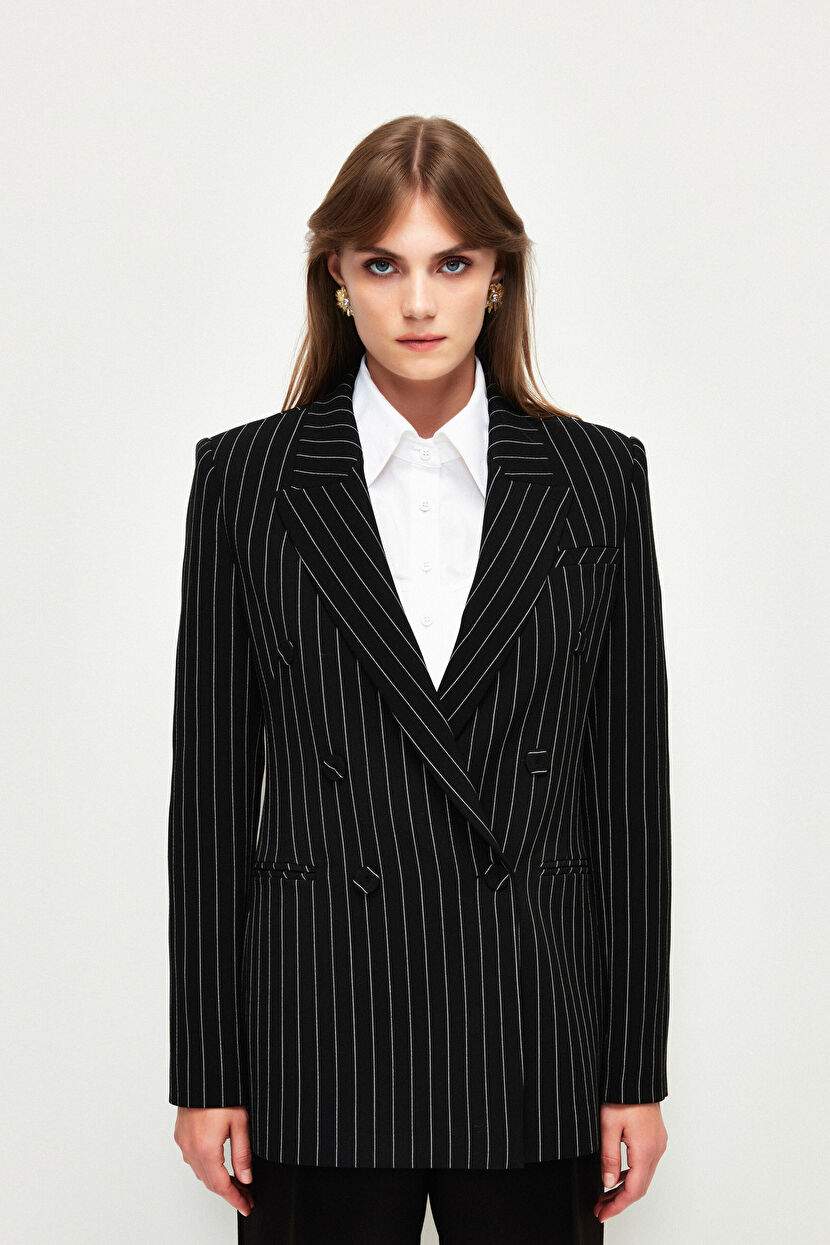 Siyah Vatkalı Çizgili Ceket