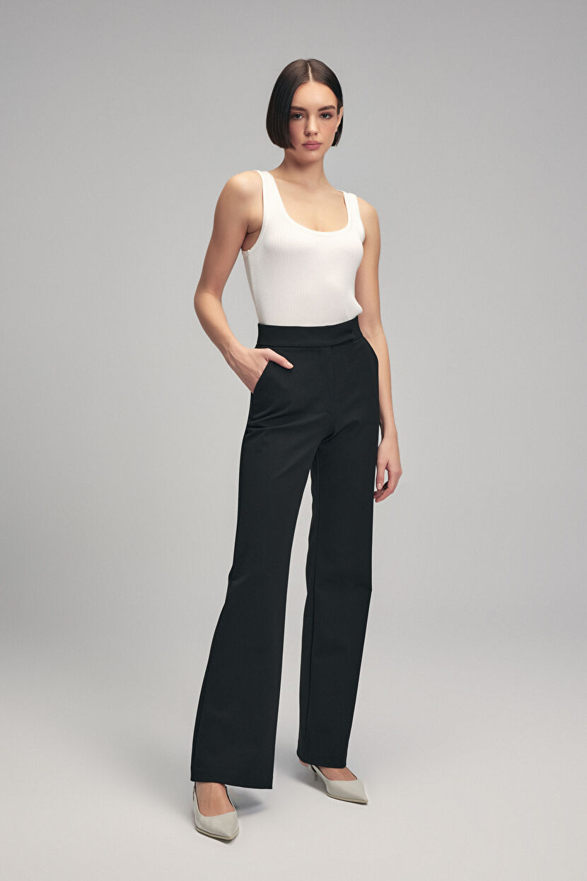 Siyah Yandan Cepli Pantolon