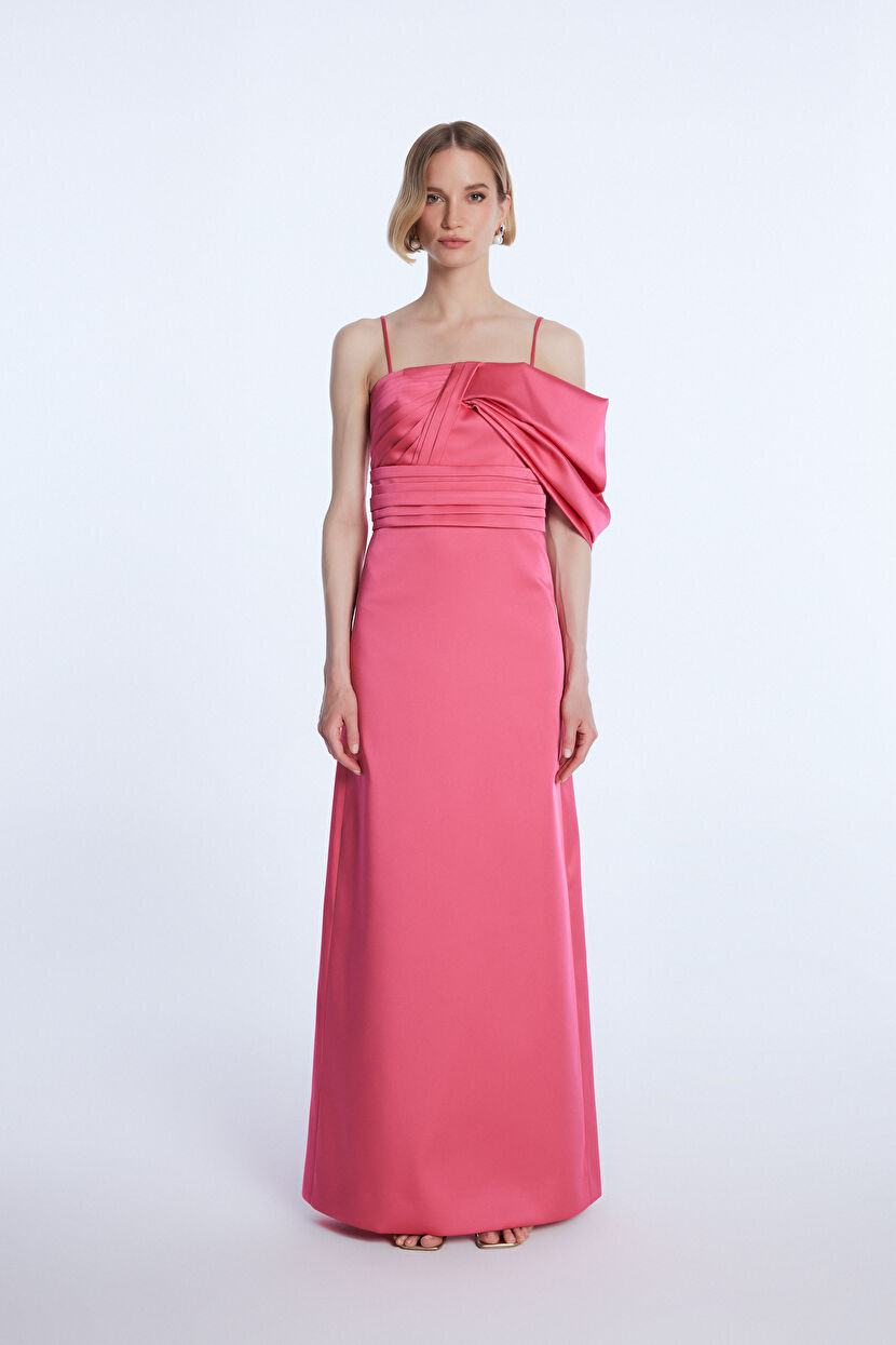 Fuşya Mert Aslan İşlemeli Tafta Elbise
