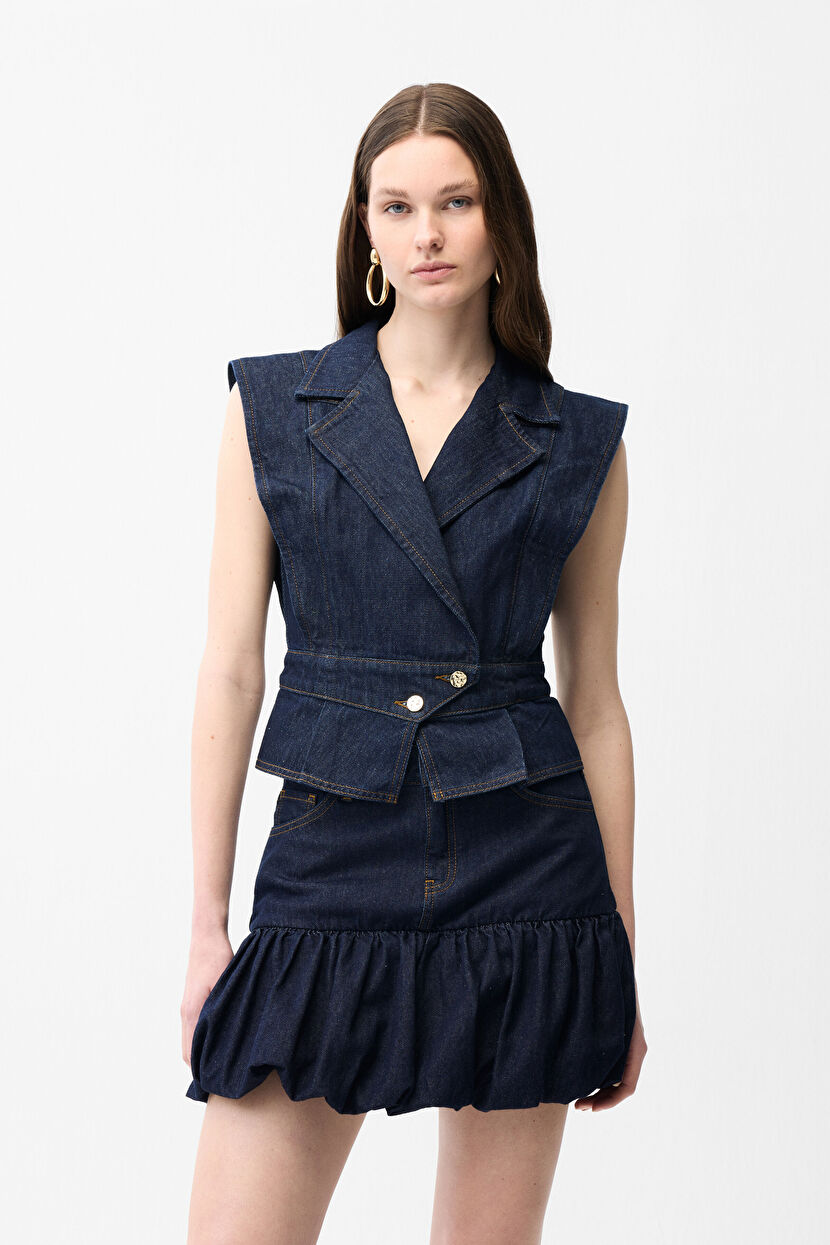 Lacivert Denim Mini Etek