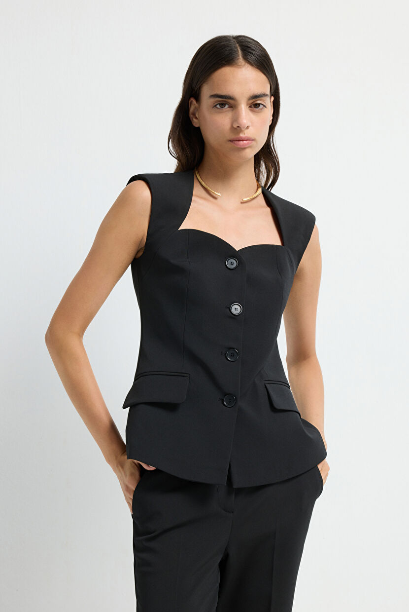 Siyah Vatkalı Önü Cepli Yelek