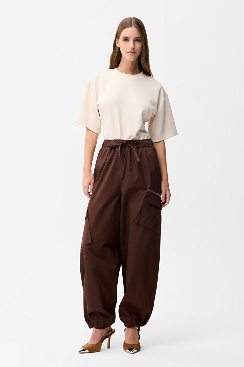 Kahverengi Cep Detaylı Bağlamalı Kargo Pantolon